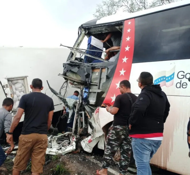 Upata-. En horas del mediodía de este martes 31 de marzo, se registró una fuerte colisión entre un autobús de pasajeros perteneciente a Expreso San Cristóbal y un camión tipo cava en la denominada curva de Santa María, ubicada en la carretera Troncal 10, en jurisdicción del municipio Piar del estado Bolívar.