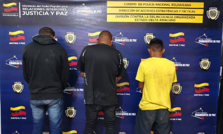 A través de los patrullajes de inteligencia y como respuesta a múltiples denuncias, funcionarios de la División Contra la Delincuencia Organizada del Cuerpo de Policía Nacional Bolivariana (CPNB) lograron la captura de tres sujetos presuntamente vinculados a una red de trata de personas conocida como “Manrri”, que operaba en el estado Delta Amacuro.